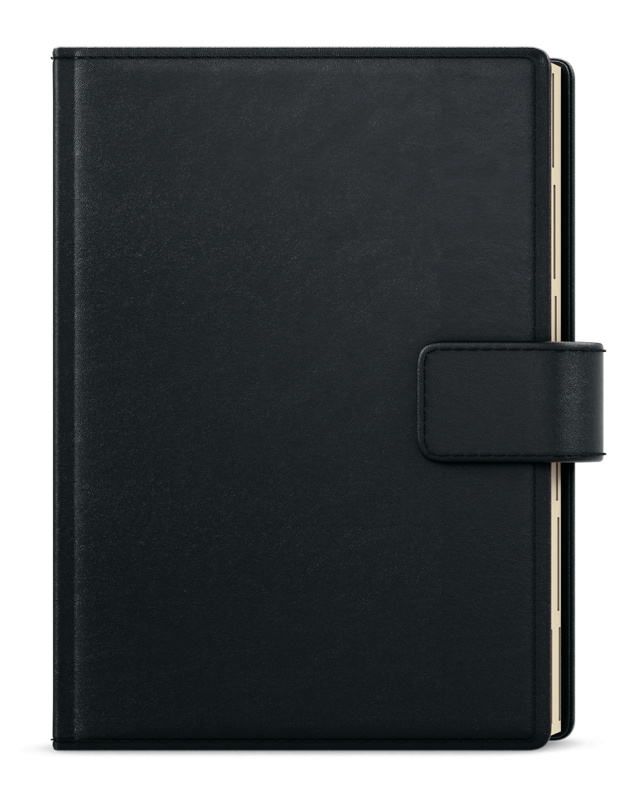Materiál jemný matný materiál, oboustranná pěnová výplň desek, obšití v barvě potahu, magnetická přezka, poutko na tužku, 3 vnitřní kapsy, šitá vazba V8, kapitálky, stužka, perforované rožky, papírová manžeta // ofset, 70g/m2, krémový papír, indexové výseky