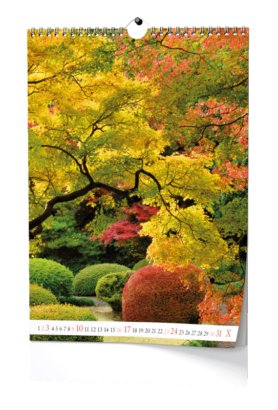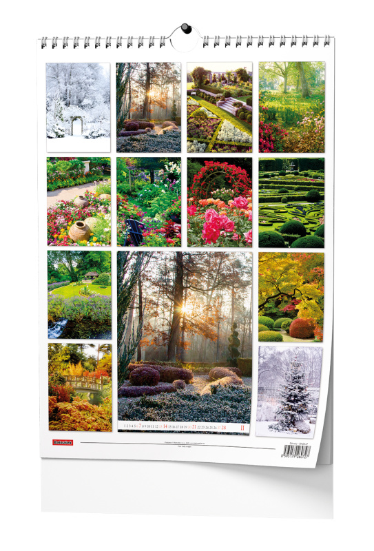 Nástěnný kalendář s obrázky nejkrásnějších zahrad.
