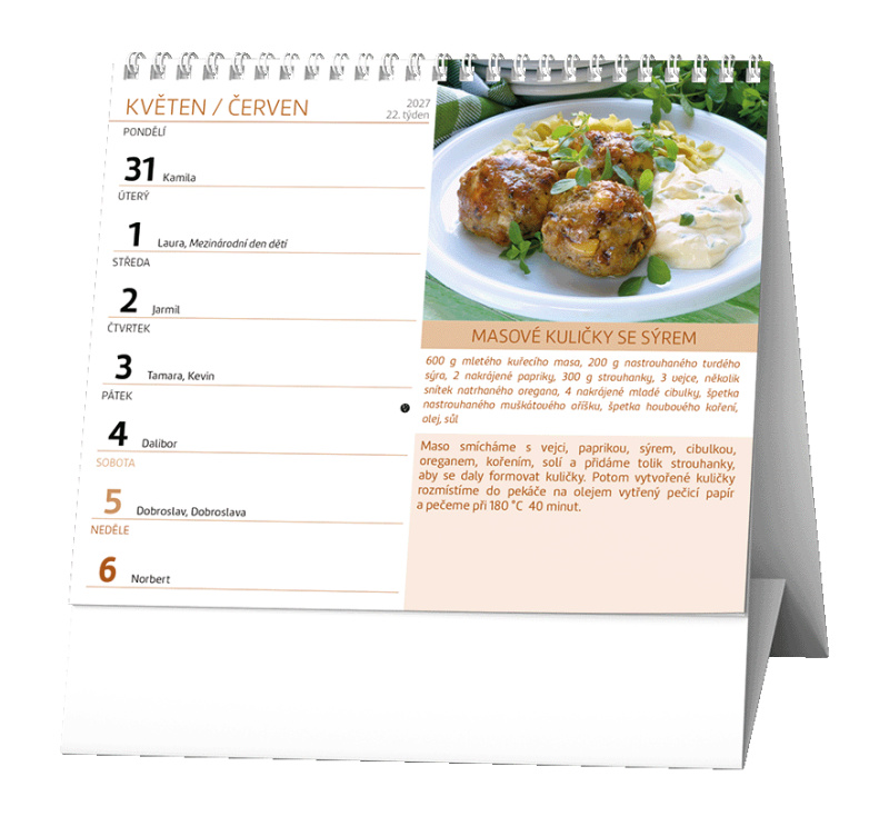 Kalendář v oblíbeném formátu a jednoduchými recepty na každý týden.