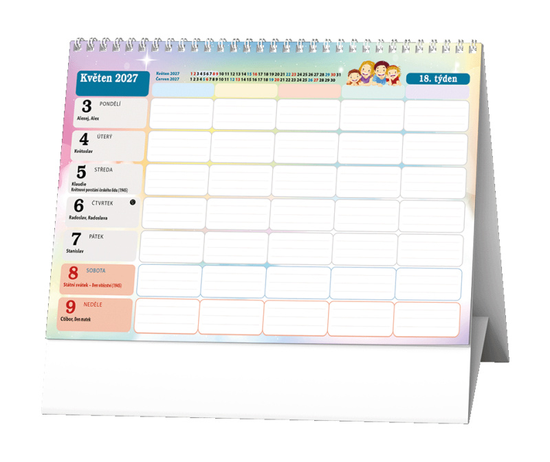 Stolní týdenní kalendář pro všechny členy rodiny.