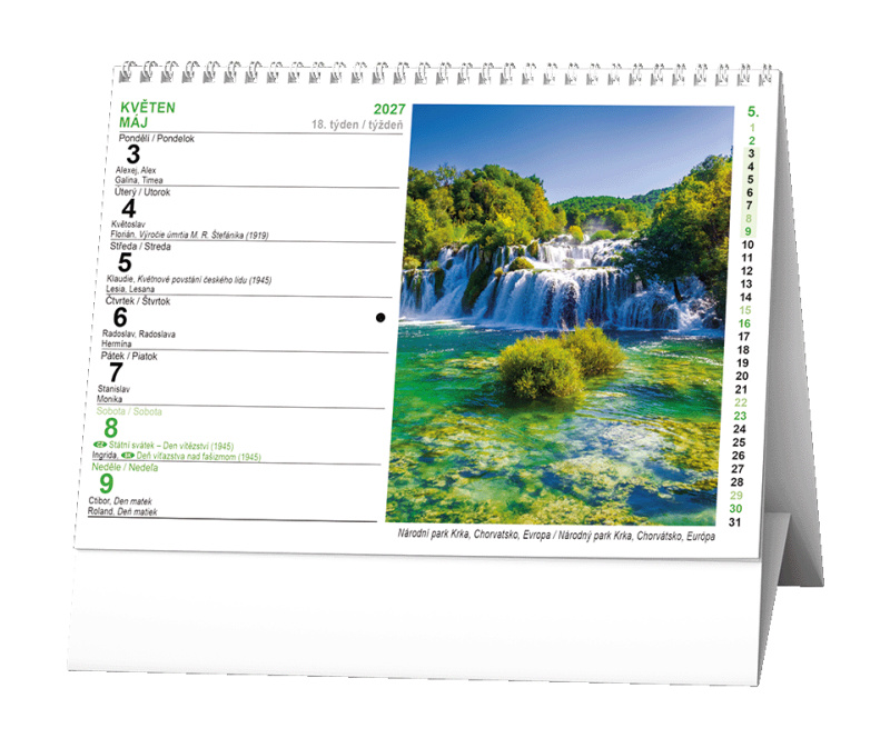 Stolní kalendář s týdenním kalendáriem s obrázky přírodních scenérií.