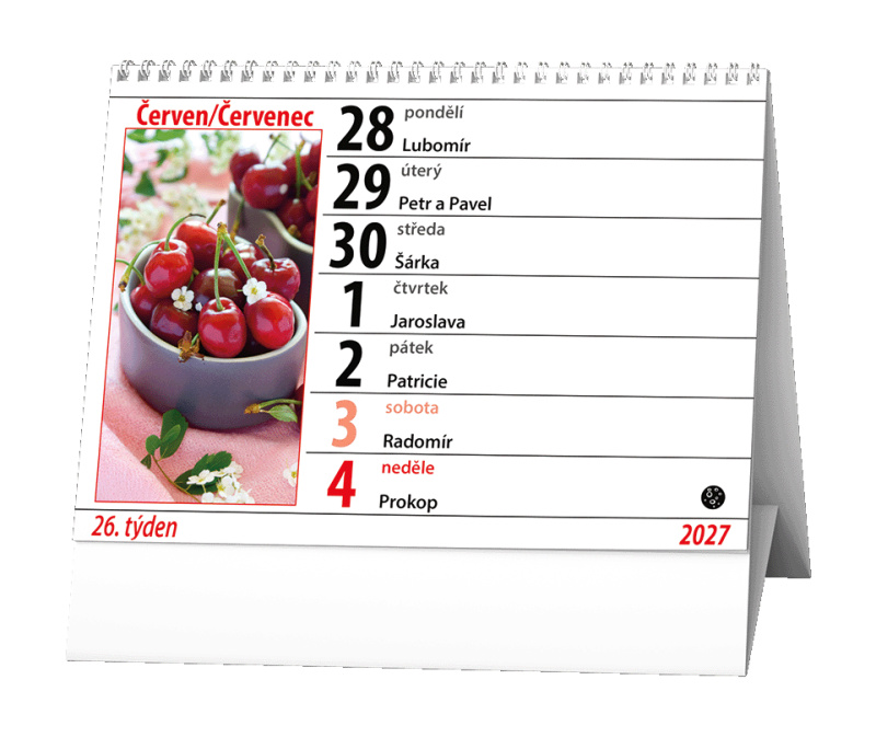 Stolní kalendář s týdenním kalendáriem s velkými písmeny a čísly, vhodný nejen pro seniory.