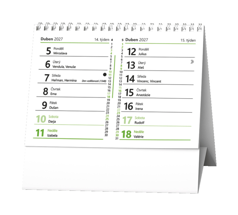 Praktický stolní kalendář se čtrnáctidenním kalendáriem. Malý formát a veselý motiv oživí Váš den.